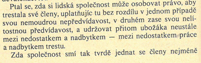 Lidská společnost udržuje jedince mezi nedostatkem práce a nadbytkem trestu, kdy se jedná o korupci a nespravedlivé chování ze stran úřadů.
