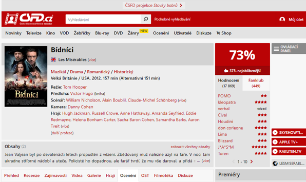 3. Bídníci. Česko-Slovenská filmová databáze © 2001-2024 POMO Media Group s.r.o. Online. Dostupné z: https://www.csfd.cz/film/298234-bidnici/prehled/